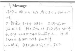 予約の時からすごく感じよくてうれしかったです。又、部屋のライトも明るく、大浴場がよかったです。他のホテルは大浴場がない時やっぱりつかれがとれてない感じで・・・。今回初めての利用でとってもよかったです。いい時間、本当にありがとうございました。...