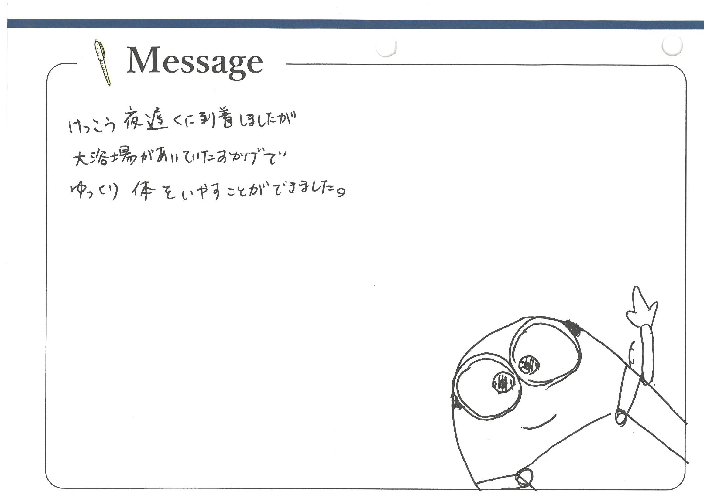けっこう夜遅くに到着しましたが大浴場があいていたおかげでゆっくり体をいやすことができました。