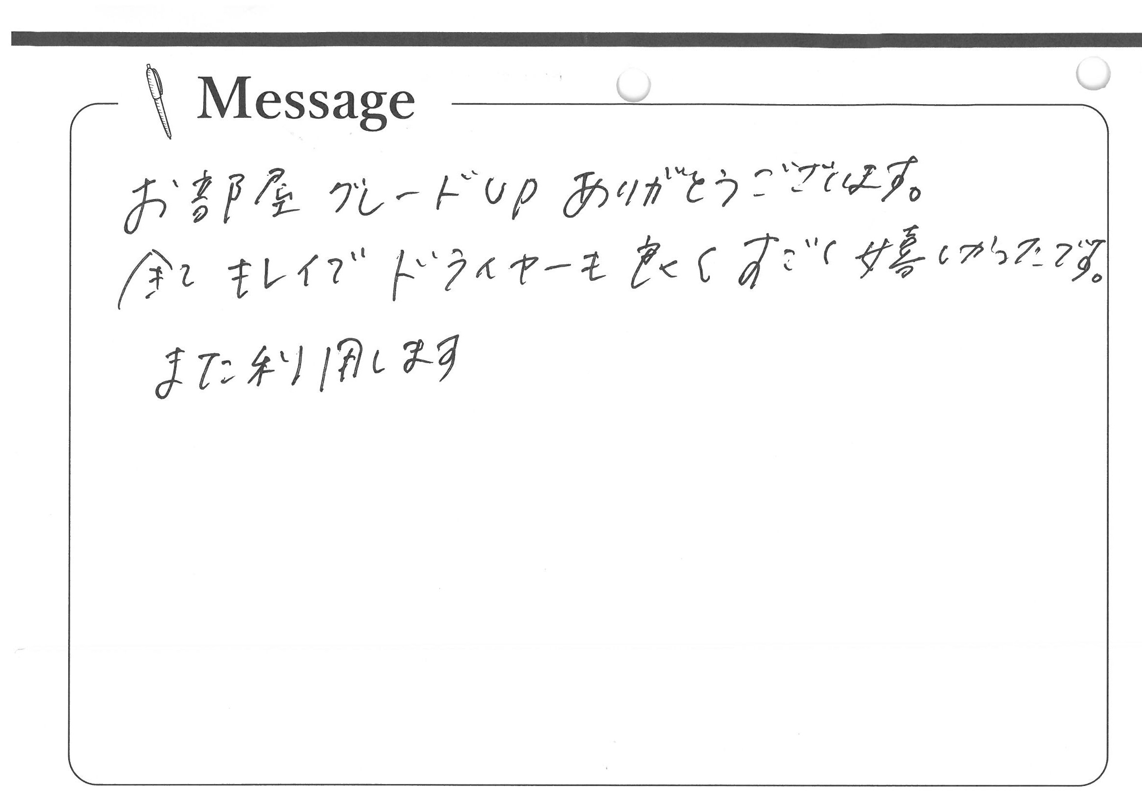 お部屋のグレードUPありがとうございます。全てキレイでドライヤーも良くすごく嬉しかったです。また利用します。